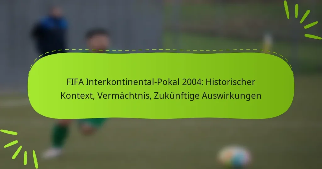 Der FIFA Intercontinental Cup 2004 stellte einen bedeutenden Moment in der Fussballgeschichte dar und präsentierte die Meister Europas und Südamerikas. Dieses Turnier hob nicht nur den Wettbewerbsgeist zwischen diesen Regionen hervor, sondern spiegelte auch die sich entwickelnde Landschaft des globalen Fussballs in dieser Zeit wider. Sein Erbe beeinflusst weiterhin internationale Vereinswettbewerbe und prägt die Zukunft des Sports. Key sections in the article: Toggle Was ist der historische Kontext des FIFA Intercontinental Cup 2004? Überblick über den FIFA Intercontinental Cup Teilnehmende…